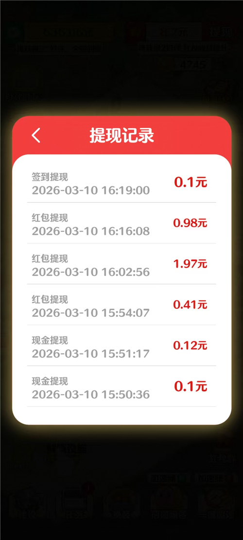 小游戏从下载到卸载,断断续续的玩,看看不少广告,最后提了十几块吧!广告太多了!